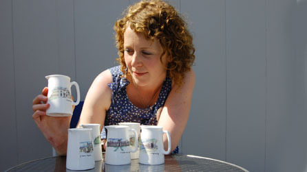 Hi gynlluniodd ac a ddarluniodd chwech o jygiau cain i godi arian tuag at yr Eisteddfod gyda llun o bob rhanbarth yng Ngheredigion ar bob jwg gan gynnwys plasdy Llanerchaeron y mae'r Eisteddfod ar ei dir.
