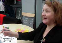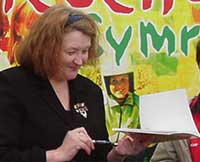 Yn eu canol yr oedd Menna Elfyn ei hun ar y diwrnod cyn cyhoeddi enw Bardd Plant nesaf Cymru yn arwyddo copiau o'r llyfr i'w hedmygwyr ifanc.
