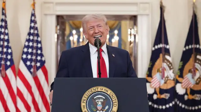 व्हाइट हाउस में ईरान युद्ध के बारे में बोलते हुए अमेरिकी राष्ट्रपति डोनाल्ड ट्रंप ने कहा, "ईरान की नेवी ख़त्म हो गई. उनकी एयरफ़ोर्स तबाह हो गई. उनके ज़्यादातर नेता मर चुके हैं."