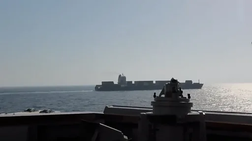 अमेरिकी सेंट्रल कमांड ने बाद में एक वीडियो जारी किया, जिसमें उसके अनुसार, एक नौसैनिक जहाज़ कार्गो जहाज़ को रोकता हुआ दिख रहा है. वीडियो में एक गन कार्गो जहाज़ की दिशा में फ़ायर करती दिखती है.