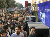 अक्तूबर में बाज़ार में आने वाली इस कार की एक झलक पाने के लिए हज़ारों-हज़ार लोग दिल्ली के प्रगति मैदान पर टूट रहे हैं, रविवार होने की वजह से प्रदर्शनी में भारी भीड़ जमा हो गई. एक अनुमान के मुताबिक़ टाटा मोटर्स की इस 'वंडर कार' को देखने के लिए रविवार को ही लगभग दो लाख लोग पहुँचे. समाचार एजेंसियों का कहना है कि भीड़ को नियंत्रित करने के लिए विशेष इंतज़ाम किए गए हैं. नैनो को देखने के लिए लोग घंटों तक कतार में खड़े रहे और कई बार धक्का-मुक्की के नज़ारे भी देखने को मिले.
