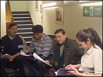नाटक के कलाकार रिहर्सल करते हुए