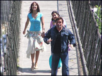 चौंकिए मत, कैटरीना कैफ रूपहले पर्दे से संन्यास लेकर तीर्थयात्रा पर नहीं निकली हैं बल्कि अपनी फिल्म 'नमस्ते लंदन' की शूटिंग के लिए ऋषिकेश और हरिद्वार जैसे धार्मिक स्थानों की यात्रा कर रही हैं और उन्हें भ्रमण करा रहे हैं ऋषि कपूर. दरअसल, 'नमस्ते लंदन' विदेश में बसे भारतीयों के जीवन पर बन रही फ़िल्म है. फिल्म में ऋषि कपूर पिता हैं जो अपनी बेटी कैटरीना कैफ को भारतीय संस्कृति और आध्यात्म से परिचित कराना चाहते हैं. “बचपन में मैं लक्ष्मण झूला को यूँ ही समझता था जैसे कोई झूला होगा जिसमें बच्चे झूलते होंगे लेकिन जब देखा तो हैरान रह गया ये तो गंगा पर बना एक पुल है", ऋषि कपूर (मनमोहन) कुछ इस अंदाज में कैटरीना कैफ (जैज) और पत्नी बनीं नीना वाडिया (बेबो) को लक्ष्मण झूला के बारे में बताते हैं.
