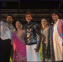कॉन्सर्ट टूर करना 70 और 80 के दशक में मैने ही शुरु किया था. एक तरह से पाइनियर किया था. उस समय ये एक नई चीज़ थी और बुहत उत्साह भी था. साथ-साथ उम्र भी थी और जवानी भी. अब तो 66 वर्ष के हो गए हैं. शरीर वैसे नहीं रहा जैसा पहले था. लेकिन परिवार के सभी सदस्य जा रहे थे तो मंशा हुई कि भई मैं भी साथ चलूँ. बस मैं साथ हो लिया. आपका परिवार इस दौरे में शामिल है- अभिषेक और ऐश्वर्या भी हैं. ये विचार कि आप सब लोग एक साथ वर्ल्ड टूर पर जाएँ कब और कैसे आया. विचार तो कंपनी का था जो ये टूर आयोजित करवा रही है. परिवार के सब लोग फ़िल्म कलाकार हैं, जया भी हमारे साथ हैं. हमें लगा कि सब लोग एक साथ वर्ल्ड टूर पर निकलें तो अच्छा रहेगा. मेरी धारणा थी कि फ़िल्म उद्योग के बाक़ी कलाकार- चाहें वो अक्षय कुमार हों, रितेश देशमुख, माधुरी, प्रीति ज़िंटा या शिल्पा शेट्टी हों- इन सबको भी शामिल किया जाए तो एक बेहतरीन दौरा बनेगा. अस्सी के दशक में कल्याणजी आनंदजी के साथ टूर कर चुके हैं, लताजी के साथ भी किया. लाइव शो का अनुभव, भारत के बाहर लोगों के सामने परफ़ॉर्म करने का अनुभव कितना अलग होता है. विदेशों में शायद दर्शकों को ये मौका कम मिलता है कि वो फ़िल्म कलाकारों से मिल सकें या उनकी लाइव प्रस्तुति देख सकें. इसलिए उनमें उत्साह थोड़ा ज़्यादा होता है. हिंदी फ़िल्मों के दर्शक जगह-जगह फैले हुए हैं. मैं तो इसी बात से ख़ुश हो जाता हूँ कि मनोरंजन के रूप में हम उन्हें जो कुछ पेश करते हैं उसे वो जोशो-ख़रोश से स्वीकार कर लेते हैं. उनके जोश को देखकर हम लोग उत्साहित होते हैं. स्टेज पर सब कुछ लाइव चल रहा होता है. कहीं कुछ गड़बड़ की आशंका तो रहती ही है. शो से पहले ये बात आपको परेशान करती है?