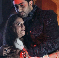 अभिषेक ने निर्देशक गोल्डी बहल की तारीफ़ करते हुए ज़ाहिर कर दिया कि मरहूम रमेश बहल का बेटा उनके लिए भाई से कम नहीं है. गोल्डी की माँ मधु बहल को अभिषेक ने स्टेज पर बुलाते वक़्त कहा कि जैसे जया बच्चन गोल्डी के लिए माँ समान है वैसे ही गोल्डी की माँ को वे भी माँ समान मानते हैं. अपने भाषण में जया ने निर्माता-निर्देशक रमेश बहल को याद करते हुए कहा, "मेरी तरफ़ से द्रोणा को मैं गोगी (रमेश बहल) को अर्पित करती हूँ." ये कहते हुए स्टेज पर जया रोने लगीं. बच्चन और बहल परिवारों में वर्षों पुरानी दोस्ती है. अमिताभ और जया बच्चन दोनों रमेश बहल की फ़िल्मों में काम कर चुके हैं. |