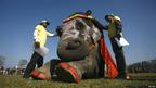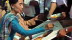 • रंगून में बर्मा की विपक्षी नेता आंग सान सू ची अपनी पार्टी के लिए चंदा जमा करने के लिए हुए कार्यक्रम के दौरान एक पेटिंग पर ऑटोग्राफ दे रही हैं जो उनके एक समर्थक ने बनाई है.