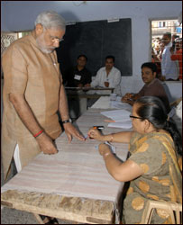 अपना वोट डालने के बाद राज्य के मुख्यमंत्री नरेंद्र मोदी ने विश्वास जताया कि 'गुजरात की परंपरा के अनुसार शांतिपूर्ण मतदान होगा और गर्मी के बावजूद लोग बड़ी संख्या में वोट डालेंगे.'