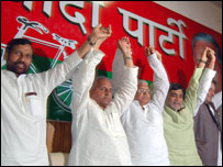 लालू प्रसाद ने कांग्रेस से अलग रामविलास पासवान की लोकजनशक्ति पार्टी और मुलायम सिंह यादव की समाजवादी पार्टी से समझौता करके चुनाव लड़ने का फ़ैसला किया था. कांग्रेस से गठबंधन तोड़ने के बाद से ही लालू प्रसाद कैबिनेट की बैठक में शामिल नहीं हो रहे हैं. लेकिन शनिवार को लोकसभा चुनाव के नतीजे आने के बाद लालू प्रसाद ने स्वीकार किया कि कांग्रेस के साथ गठबंधन न करना ग़लती थी. राजद को बिहार में सिर्फ़ चार सीटें मिली हैं, जबकि लोकजनशक्ति पार्टी तो अपना खाता भी नहीं खोल पाई. |