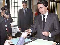 स्पेन के आम चुनाव में लोगों ने बढ़-चढ़ कर मतदान में भाग लिया है. अधिकारियों के अनुसार पिछली बार के आम चुनाव की तुलना में इस वर्ष मतदाताओं में मत डालने के लिए ज़्यादा उत्साह देखा गया. मैड्रिड में मतदान की गति तेज़ रही जहाँ गुरुवार को विस्फोटों में 200 लोगों की मौत हो गई थी. रविवार को मतदान शुरू होने से कुछ घंटे पहले अधिकारियों ने एक वीडियो टेप बरामद होने की बात की, जिसमें कथित रूप से अल-क़ायदा के एक प्रवक्ता का संदेश है. अपने को यूरोप में अल-क़ायदा का सैनिक प्रवक्ता बताने वाले एक व्यक्ति ने मैड्रिड विस्फोटों की ज़िम्मेवारी ली है. स्पेन सरकार अब भी विस्फोटों के पीछे बास्क अलगाववादी संगठन एटा का हाथ होने की संभावना पर ज़ोर दे रही है. एटा ने एक बार हमले में अपना हाथ होने से इनकार किया है. इस बीच मैड्रिड विस्फोटों के सिलसिले में पुलिस ने भारतीय मूल के दो लोगों सहित कुल पाँच लोगों को हिरासत में लिया है. इस बीच अपना वोट डालते हुए स्पेन के प्रधानमंत्री होज़े मारिया अज़नार ने कहा है कि कोई चरमपंथी संगठन स्पेन के लोगों को स्वतंत्रतापूर्वक जीने से नहीं रोक सकता. मैड्रिड से बीबीसी के एक संवाददाता के अनुसार स्पेनवासियों ने मैड्रिड हमले को लोकतंत्र पर हमले के रूप में लिया है, और अपना समर्थन दिखाने के लिए बढ़-चढ़कर मतदान में भाग ले रहे हैं. |