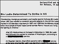 अमरीका के राष्ट्रपति के दफ़्तर व्हाइट हाउस ने 11 सितंबर 2001 को हुए हमलों से एक महीना पहले तैयार की गई महत्वपूर्ण ख़ुफ़िया सूचनाएं सार्वजनिक कर दी हैं. इन सूचनाओं को पहले गोपनीय बताया गया था. इन सूचनाओं में कहा गया था कि अल क़ायदा संभवतः अमरीका में विमानों का अपहरण कर सकता है. 11 सितंबर के हमलों की जाँच कर रह आयोग ने इन सूचनाओं को जारी करने के लिए कहा था जिसके बाद राष्ट्रपति को ख़ुफ़िया जानकारियाँ देने वाली ये सूचनाएं जारी की गईं. अमरीका की राष्ट्रीय सुरक्षा सलाहकार कोंडोलीज़ा राइस ने इस आयोग के सामने इस सप्ताह पेश होकर बताया था कि उन्होंने अगस्त 2001 में इन सूचनाओं के बारे में राष्ट्रपति बुश के साथ विचार-विमर्श किया था. लेकिन राइस ने कहा कि उन सूचनाओं में कोई नई जानकारी नहीं थी और सिर्फ़ पुरानी बातें ही थीं जिनमें किसी संभावित हमले के बारे में कोई चेतावनी नहीं थी. राइस ने कहा कि उन सूचनाओं में सिर्फ़ यह कहा गया था कि बिन लादेन लड़ाई को अमरीका तक पहुँचाना चाहते हैं. वाशिंगटन में मौजूद बीबीसी संवाददाता जॉन लाइन का कहना है कि इन सूचनाओं के सार्वजनिक होने से व्हाइट हाउस के इन दावों पर संदेह खड़ा हो जाता है कि उसे 11 सितंबर के हमलों के बारे में पहले से कोई ठोस सूचना उपलब्ध नहीं थी. संवाददाता का कहना है कि व्हाइट हाउस ने ये सूचनाएं जानबूझकर ऐसे समय में जारी की हैं जब अमरीका में लंबी छुट्टी होने की वजह से ज़्यादातर लोग ख़बरों पर नज़र नहीं रख रहे हैं. |