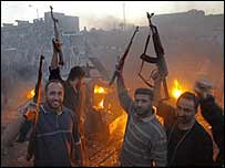 इस हमले के बाद अमरीकी हेलिकॉप्टरों और जेट लड़ाकू विमानों ने शहर की कई इमारतों को निशाना बनाया. शहर से मोर्टार और मशीनगन की आवाज़ें सुनाई दे रही थी और कई इमारतों से धुआँ निकलता दिख रहा था. स्थानीय अस्पताल सूत्रों का कहना है कि उन्होंने इतनी संख्या में एक साथ घायल अमरीकी सैनिकों को नहीं देखा. अमरीकी सैनिक इस समय फ़लूजा में इराक़ी पुलिसकर्मियों को प्रशिक्षण दे रहे हैं ताकि संयुक्त रूप से शहर की गश्त लगाई जा सके. उधर जॉर्डन में संयुक्त राष्ट्र अधिकारियों के साथ बैठक में फ़लूजा परिषद के सदस्यों ने अमरीका पर आरोप लगाया कि अमरीकी सैनिकों ने शहर पर क्लस्टर बमों का इस्तेमाल किया और संघर्ष विराम के दौरान भी गोलीबारी की. उन्होंने शहर में संघर्ष रोकने के लिए बातचीत में संयुक्त राष्ट्र से मध्यस्थता की अपील भी की. इस बीच एक अरबी टीवी चैनल ने एक वीडियो का प्रसारण किया है जिसमें चैनल के मुताबिक़ उन इटली के नागरिकों को दिखाया गया जिन्हें इराक़ में बंधक बना लिया गया था. |