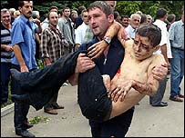 स्कूल की इमारत के अंदर से विस्फोटों की आवाज़ें आ रही हैं और उनसे आग लग गई है. स्कूल के बाहर मौजूद बीबीसी संवाददाता ने बताया कि बाहर आने वाले लोग बहुत प्यासे थे और ज़्यादातर लोग अपने पैरों पर खड़े होने की हालत में नहीं थे. चारों तरफ़ खून से लथपथ लोग भागते नज़र आ रहे थे. इस सैनिक कार्रवाई में हेलिकॉप्टरों और तोपों का भी इस्तेमाल किया गया और वहाँ मौजूद लोगों ने काफ़ी देर तक ज़ोरदार धमाकों की आवाज़ें सुनीं. पहले बताया गया था कि चरमपंथियों ने स्कूल में बम लगा दिया है और धमकी दी है कि अगर रूसी सैनिकों ने स्कूल में घुसने की कोशिश की तो वे पूरी इमारत को उड़ा देंगे. |
