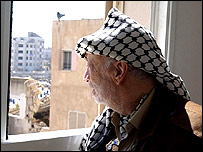अराफ़ात ग़ज़ा लौट आए और वहाँ फ़लस्तीनी राष्ट्रीय प्राधिकरण की स्थापना की, और 1996 में इसके अध्यक्ष चुने गए. उधर फ़लस्तीनी समस्या का पूरी तरह समाधान नहीं हो पाया. फ़लस्तीनी शरणार्थियों और यहूदी बस्तियों जैसे मुद्दे उठते रहे. वर्ष 1995 में रबीन की हत्या हो गई. टिकाऊ शांति की उम्मीदें कम होती गईं. ऐसे में फ़लस्तीनियों ने 2000 में नए सिरे से सशस्त्र इंतिफ़ादा की घोषणा की. नज़रबंद अप्रैल 2002 में इसराइली प्रधानमंत्री अरियल शेरॉन ने उनपर आतंकवाद फैलाने का आरोप लगाया और इसराइली सैनिकों ने पश्चिमी तट के रामल्ला स्थिति उनके मुख्यालय की घेराबंदी कर डाली. तब से अराफ़ात वहीं एक तरह से क़ैद रहे. इस बीच उनके फ़लस्तीनी आलोचकों ने भी उन पर भ्रष्ट प्रशासन देने, इसराइल को रियायत देने और अमरीका पर ज़रूरत से ज़्यादा विश्वास करने के आरोप लगाए. ऐसे में 1974 में संयुक्तराष्ट्र महासभा की वो घटना याद आती है जब अंतरराष्ट्रीय जगत को संबोधित करते हुए अराफ़ात ने कहा कि वो शांति के प्रतीक जैतून की डाल और आज़ादी के दीवाने की बंदूक के साथ आए हैं. उन्होंने दुनिया भर से आए प्रतिनिधियों से आगे कहा, "मेरे हाथों से जैतून की डाल गिरने नहीं देना." |