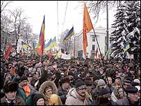 वैसे प्रधानमंत्री विक्टर यानूकोविच और विपक्षी नेता विक्टर युशचेन्को एक बार फिर बातचीत के लिए राज़ी हो गए हैं. लेकिन दोनों नेताओं के बीच बातचीत कोर्ट के फ़ैसले के बाद ही होगी. राजधानी किएफ़ स्थित बीबीसी संवाददाता का कहना है कि दोनों पक्षों को उम्मीद है कि शायद नए सिरे से चुनाव हों लेकिन अभी इस मामले पर कई चीज़े तय होनी है. मध्यस्थता युशचेन्को समर्थक विपक्ष सरकारी इमारतों की घेराबंदी ख़त्म करने को राज़ी हो गया है. लेकिन युशचेन्को ने अपने समर्थकों से राजधानी में डटे रहने को कहा है. बुधवार को राष्ट्रपति चुनाव में विजयी घोषित किए गए प्रधानमंत्री विक्टर यानूकोविच और प्रतिद्वंद्वी उम्मीदवार विक्टर युशचेन्को ने अंतरराष्ट्रीय मध्यस्थों की उपस्थिति में बातचीत की. दोनों नेता राष्ट्रपति चुनाव के बारे में सुप्रीम कोर्ट का फ़ैसला आ जाने के बाद आगे बातचीत जारी रखने पर सहमत हुए हैं. यूक्रेन की संसद ने बुधवार को प्रधानमंत्री यानूकोविच के ख़िलाफ़ अविश्वास प्रस्ताव पारित किया. यह काफ़ी कम अंतर से पारित हुआ. इस बीच यानूकोविच ने पद छोड़ने की माँग ठुकराते हुए संसद में अपने ख़िलाफ़ पारित अविश्वास प्रस्ताव को अवैध बताया है. यानूकोविच ने आरोप लगाया है कि सांसदों ने दबाव में आकर अविश्वास प्रस्ताव पारित किया. विपक्षी नेता विक्टर युशचेन्को ने यानूकोविच के ख़िलाफ़ अविश्वास प्रस्ताव पर चर्चा कराने की मांग की थी. |