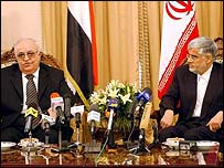 ईरान और सीरिया ने विदेशों से मिल रही चुनौतियों और धमकियों का सामना करने के लिए संयुक्त मोर्चा बनाने का फैसला किया है. पिछले दिनों अमरीका ने इन दोनों देशों को चेतावनी दी थी कि वे आतंकवादी गतिविधियों को प्रश्रय देना बंद करें. ईरान पर अमरीका ने परमाणु हथियारों का निर्माण करने के गंभीर आरोप लगाए हैं. इस बीच ईरान के परमाणु ठिकानों में विस्फोट की अपुष्ट ख़बरें आई हैं. सीरिया के साथ संयुक्त मोर्चे के बारे में ईरान के उपाध्यक्ष मोहम्मद रेज़ा आरिफ़ ने सीरिया के प्रधानमंत्री नाजी अल ओतारी से मुलाक़ात के बाद कहा " हम सभी स्तर पर सीरिया को मदद करने के लिए तैयार हैं ताकि वो धमकियों का सामना कर सकें. " पिछले दिनों लेबनान की राजधानी बेरुत में हुए आत्मघाती विस्फोट में पूर्व प्रधानमंत्री राफिक हारिरी की हत्या के बाद अमरीका ने सीरिया पर दबाव और बढ़ा दिया है. अमरीका ने सीरिया से अपने राजदूत को भी वापस बुला लिया है. लेबनान के कई नेता हारिरी की मौत के लिए सीरिया को ज़िम्मेदार मानते हैं लेकिन सीरिया की सरकार ने हारिरी की हत्या में किसी भी तरह से संलग्न होने की ख़बरों का खंडन किया है. जासूसी के आरोप ईरान के टेलीविज़न पर दी जा रही रिपोर्टों की स्वतंत्र सूत्रों से पुष्टि नहीं की रही है लेकिन ईरान ने अमरीका पर उसके परमाणु ठिकानों की जासूसी करने का भी आरोप लगाया है. ईरान की खुफ़िया मामलों के मंत्री अली युनेशी का कहना है कि ईरान के आकाश पर कई चमकती वस्तुएं देखी गई हैं जो अमरीका के चालक रहित जासूसी विमान हो सकते हैं. पिछले हफ्ते वाशिंगटन पोस्ट ने ख़बर दी थी कि अमरीका कई महीनों से ईरान में जासूसी का काम कर रहा है और यह काम इराक से किया जा रहा है. ईरान हमेशा से कहता रहा है कि उसका परमाणु कार्यक्रम शांतिपूर्ण उद्देश्यों के लिए है लेकिन अमरीका का कहना है कि ईरान परमाणु हथियार बना रहा है. |