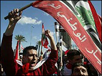 प्रदर्शनकारी माँग कर रहे हैं कि लेबनान से सीरिया के 15 हज़ार सैनिकों को वापस भेजा जाए.