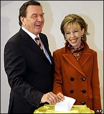जर्मनी के आम चुनाव में विपक्षी रूढ़िवादी गठबंधन सत्ताधारी पार्टी से केवल तीन सीट से आगे रहा है लेकिन वह अपने दम पर सरकार नहीं बना सकेगा. संसदीय चुनाव में एंगेला मैरकल का क्रिश्चियन डेमोक्रेट गठबंधन वर्तमान चांसलर गेरहर्ड श्रोएडर की पार्टी सोशल डेमोक्रेट (एसपीडी) से आगे रहा है. लेकिन दोनों प्रतिद्वंद्वियों को मिले मतों का अंतर एक प्रतिशत से भी कम है. ऐसी स्थिति में दोनों में से किसी भी पक्ष ने हार स्वीकार नहीं की है जिससे देश में राजनीतिक अनिश्चय की स्थिति बन गई है. बताया जा रहा है कि इस राजनीतिक अनिश्चय का हल निकलने में कई दिन से लेकर कई सप्ताह तक का समय लग सकता है. संवाददाताओं के अनुसार अब ज़्यादा संभावना एक साझा सरकार के गठन की है. स्थिति