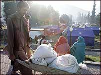 इस बीच बुधवार को भारत और पाकिस्तान, दोनों ही तरफ़ के कश्मीरों में भूकंप के बड़े झटके आए जिससे राहत कार्यों में फिर बाधा आई. रिक्टर पैमाने पर 5.8 और 5.4 की तीव्रता वाले इन झटकों को इस्लामाबाद तक में महसूस किया गया. फ़ोन संपर्क भारत सरकार ने बुधवार को नियंत्रण रेखा के दोनों तरफ़ के कश्मीर के बीच फ़ोन संपर्क बहाल कर दिया जिससे कि प्रभावित क्षेत्रों के लोग आपस में बात कर सकें. जम्मू, श्रीनगर, तंगडार और उड़ी में टेलीफ़ोन केंद्र बनाए गए हैं जहाँ से लोग सीमा पार अपने संबंधियों के घर बिना किसी शुल्क के फ़ोन कर सकते हैं. ये केंद्र 24 घंटे तक खुले रहेंगे. ये सुविधा एक पखवाड़े तक के लिए शुरू की गई है लेकिन अधिकारियों ने कहा है कि ये सुविधा बढ़ाई भी जा सकती है. जम्मू से मुज़फ़्फ़राबाद में अपने संबंधियों के पास सबसे पहला फ़ोन किया मुख़्तियार अहमद ने जहाँ से उन्हें ये दुःखद ख़बर मिली कि भूकंप में उनके 18 संबंधी नहीं रहे. |