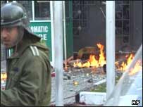 पैगंबर मोहम्मद साहब के कार्टूनों के ख़िलाफ़ विभिन्न देशों में प्रदर्शनों का दौर जारी है. इस दौरान हुई हिंसा की घटनाओं में सोमवार से मंगलवार तक नौ लोगों की जान जा चुकी है. आठ लोगों की मौत अफ़ग़ानिस्तान में हुई जबकि एक व्यक्ति सोमालिया में मारा गया. |
