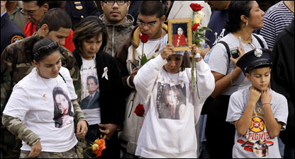 ग्राउंड ज़ीरो पर श्रद्धांजलि सभा में राष्ट्रपति पद के उम्मीदवार बराक ओबामा और जॉन मैकेन हिस्सा ले रहे हैं. ग्राउंड ज़ीरो की सभा का नेतृत्व न्यूयॉर्क शहर के मेयर माइकल ब्लूमबर्ग ने किया. बाद में मारे गए लोगों के परिजनों ने उनके नाम पढ़े. 11 सितंबर के हमलों के बाद अमरीका ने अफ़ग़ानिस्तान और इराक़ में सैनिक कार्रवाई शुरू की थी. आतंकवाद के ख़िलाफ़ युद्ध राष्ट्रपति जॉर्ज बुश के कार्यकाल का सबसे महत्वपूर्ण क्षण माना जाता है. राष्ट्रपति के रूप में जॉर्ज बुश आख़िरी बार इन हमलों की बरसी पर हुई श्रद्धांजलि सभा में शामिल हुए. एक दिन पहले ही राष्ट्रपति बुश की प्रेस सेक्रेटरी डाना पेरिनो ने कहा था- राष्ट्रपति सोने से पहले और उठते समय प्रतिदिन 9/11 की घटना के बारे में सोचते हैं. |