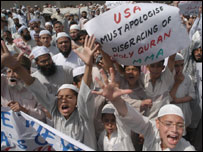 छह धार्मिक पार्टियों के गठबंधन मुत्तहिदा मजलिस-ए-अमल (एमएमए) ने इसका आह्वान किया था. एमएमए ने अमरीका से कहा है कि वह इस मामले में बिना शर्त माफ़ी मांगे अन्यथा उसके ख़िलाफ़ और प्रदर्शन होंगे.