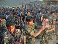 नेपाल में एक हिंसक संघर्ष में कम से कम पाँच माओवादी विद्रोही और एक सैनिक मारे गए हैं. अधिकारियों ने इसकी जानकारी देते हुए बताया कि बरदिया ज़िले में एक सुरक्षा चौकी पर विद्रोहियों के हमले के बाद दोतरफ़ा गोलीबारी हुई. बरदिया में नेशनल पार्क के पास शुक्रवार को शुरू हुई मुठभेड़ शनिवार सुबह तक चली. मुठभेड़ में चार सैनिक घायल भी हुए हैं. सेना के एक प्रवक्ता ने कहा है कि हताहत माओवादियों की संख्या बढ़ सकती है. प्रवक्ता गोपाल थापा ने समाचार एजेंसी एएफ़पी को बताया, "संघर्ष में कम से कम 60 चरमपंथी मारे गए होंगे. लेकिन चरमपंथियों का दल मृतकों के शवों को अपने साथ ले जाने में सफल रहे हैं." माओवादी विद्रोहियों ने इस भिड़ंत के बारे में कोई बयान नहीं दिया है. इसबीच समाचार एजेंसी पीटीआई के अनुसार नेपालगंज में एक बम विस्फोट में एक सात वर्षीय भारतीय लड़की की मौत हो गई है. पुलिस के अनुसार एक सुरक्षा गश्ती दल को निशाना बनाकर माओवादियों ने विस्फोट कराया था. |