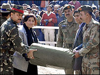 नियंत्रण रेखा खोलने की घोषणा के साथ ही उड़ी के पास भारतीय सेना के कमान पोस्ट के पास भारतीय दल ने राहत सामग्री पाकिस्तानी दल को सौंपा.
