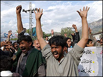पाकिस्तान की पुलिस ने मुज़फ़्फ़राबाद में प्रदर्शन कर रहे भूकंप पीड़ितों को तितर-बितर करने के लिए लाठीचार्ज किया है. प्रदर्शनकारी उन्हें अस्थायी शिविरों से हटाए जाने का विरोध कर रहे थे. पुलिस कार्रवाई में अनेक प्रदर्शनकारियो के घायल होने की ख़बर है. लाठीचार्ज से ग़ुस्साए प्रदर्शनकारियों ने भी पुलिस पर पथराव किया. इस घटना में दो पुलिसकर्मी घायल हो गए हैं. पुलिस ने उपद्रव करने के आरोप में पाँच लोगों को गिरफ़्तार किया है. इलाक़े में चार से ज़्यादा लोगों के एक जगह एकत्रित होने पर रोक लगा दी गई है. शिविर हटाने का मामला मामला भूकंप पीड़ितों के जलालाबाद गार्डेन्स नामक एक अस्थायी शिविर को हटाए जाने का है. पुलिस का कहना है कि शिविर में साफ़-सफ़ाई की पर्याप्त व्यवस्था नहीं होने के कारण लोगों को वहाँ से हटाया जाना ज़रूरी हो गया है. पुलिस प्रमुख शाहिद हसन ने कहा, "अस्थायी शिविर इसलिए ख़ाली करने को कहा गया क्योंकि यह शहर के बीचों-बीच बना है. यहाँ सफ़ाई की भी पर्याप्त व्यवस्था नहीं है." दूसरी ओर प्रदर्शनकारियों का कहना है कि उनके रहने लिए और कोई दूसरा ठिकाना नहीं है. | इससे जुड़ी ख़बरें सैकड़ों भूकंप पीड़ित डायरिया की चपेट में09 नवंबर, 2005 | भारत और पड़ोस 'मृतकों की संख्या 87 हज़ार के पार'08 नवंबर, 2005 | भारत और पड़ोस लेकिन हौसले हैं अब भी बुलंद08 नवंबर, 2005 | भारत और पड़ोस 'मरने वालों की संख्या और बढ़ सकती है'08 नवंबर, 2005 | भारत और पड़ोस 'लोगों को सर्दी से बचाना है प्राथमिकता'06 नवंबर, 2005 | भारत और पड़ोस | ||||||||||||||||||||||||||||||||||||||||||||||||||||||||||||||||||||||||||||||||||||||||||