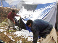 पाकिस्तान प्रशासित कश्मीर और अन्य इलाक़ों में आए विनाशकारी भूकंप के तीन महीने बाद भी प्रभावित लोग कड़कड़ाती सर्दी में टेन्ट या किसी अस्थायी शिविरों में पनाह लिए हुए हैं. राहत कर्मियों का कहना है कि भीषण ठंड में लोगों की सुविधा का ख़्याल रखा जा रहा है. लेकिन पिछले हफ़्ते आई बारिश और बर्फबारी के कारण मुश्किलें पेश आ रही हैं. पिछले तीन महीनों में पाकिस्तान सेना ने भूकंप प्रभावित इलाक़ों को सब-सेक्टर में बाँट दिया है ताकि राहत कार्य प्रभावी ढंग से हो सके. इन इलाक़ों में सेना अंतरराष्ट्रीय और अन्य राहत संगठनों के साथ मिलकर काम कर रही है. संयुक्त राष्ट्र का आकलन है कि अभी भी 24 लाख लोगों के लिए राहत कार्य जारी रखना ज़रूरी है. आकलन इनमें से 20 लाख लोग तो निचले इलाक़े में रहते हैं और बर्फबारी के कारण इन्हें काफ़ी मुश्किलों का सामना करना पड़ता है.