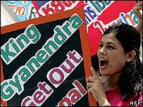 उधर जनांदोलन को देखते हुए सरकारी टीवी पर घोषणा के बाद काठमांडू में दिन का कर्फ़्यू फिल लागू किया गया. रविवार को राजधानी काठमांडू में पुलिस और प्रदर्शनकारियों के बीच कई झड़पें हुईं थीं और कई जगह पर मंगलवार को भी झड़पें हुईं. राजनीतिक दलों और राजा ज्ञानेंद्र के बीच गतिरोध बना हुआ है. विपक्षी दल पहले ही नेपाल नरेश के उस प्रस्ताव को ठुकरा चुके हैं जिसमें उन्होंने राजनीतिक दलों से प्रधानमंत्री चुनकर सरकार का गठन की बात कही थी. सात राजनीतिक दलों का कहना था कि राजा को उस पूरे मसौदे को लागू करना चाहिए जो लोकतंत्र की स्थापना के लिए दिया गया है. |