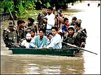 उत्तरी और मध्य गुजरात में बाढ़ से उत्पन्न स्थिति गंभीर बनी हुई है जबकि राजधानी अहमदाबाद में राहत कार्यों में मदद के लिए सेना को बुलाया गया और हज़ारों लोगों को सुरक्षित स्थानों तक पहुँचाया गया है. समाचार एजेंसियों के अनुसार देश के कई राज्यों में बाढ़ की स्थिति गंभीर है. उड़ीसा में लगभग एक हज़ार गाँव, राजस्थान का उदयपुर ज़िला, आध्र प्रदेश का वेस्ट गोदावरी ज़िला और मध्यप्रदेश में चंबल नदी का कुछ इलाक़ भी बाढ़ से प्रभावित है. समाचार एजेंसियों के अनुसार अहमदाबाद में दमकल कर्मचारियों ने कई जगह पर फँसे हुए लोगों को सुरक्षित जगहों तक पहुँचाया. उत्तरी गुजरात में मूसलाधार बारिश हो रही है. साबरमती नदी में पानी ख़तरे के निशान से ऊपर बह रहा है और पानी अहमदाबाद ज़िले के कई गावों में घुस गया है. शनिवार को पाँच ज़िलों में बाढ़ का पानी आ जाने के बाद 60 हज़ार लोगों को सुरक्षित स्थानों पर पहुँचाया गया था. धरोही और कादाना बाँधों से पानी छोड़े जाने के बाद अहमदाबाद, पंचमहल, खेदा, आनंद और वडोदरा के निचले इलाक़ों में बाढ़ का पानी भर गया था. अधिकारियों का कहना है कि पानी इसलिए छोड़ना पड़ा क्योंकि बाँध वाले क्षेत्र में भीषण वर्षा हुई थी और जल का स्तर बढ़ गया था. इस बार बारिश के मौसम में पूरे राज्य में 160 लोग अपनी जान गँवा चुके हैं. महत्वपूर्ण है कि हाल में सूरत में आई बाढ़ से शहर बुरी तरह प्रभावित हुआ था. पूरे शहर में पानी भर गया था और कई लोग मारे गए थे. सूरत में व्यापक सफाई अभियान छेड़ा गया है ताकि किसी महामारी को फैलने से रोका जा सके और मुख्यमंत्री नरेंद्र मोदी ने भी इसका निरीक्षण किया था. | इससे जुड़ी ख़बरें सूरत शहर में व्यापक सफ़ाई अभियान14 अगस्त, 2006 | भारत और पड़ोस आंध्र में 130 की मौत, महामारी का ख़तरा13 अगस्त, 2006 | भारत और पड़ोस प्रभावित इलाक़ों में सहायता की सच्चाई12 अगस्त, 2006 | भारत और पड़ोस सूरत में बाढ़ से अबतक 65 मरे12 अगस्त, 2006 | भारत और पड़ोस प्रधानमंत्री का बाढ़ वाले इलाक़ों का दौरा11 अगस्त, 2006 | भारत और पड़ोस पश्चिम भारत में बाढ़ से राहत नहीं10 अगस्त, 2006 | भारत और पड़ोस बाढ़ की स्थिति बदतर, कई ऊर्जा संयंत्र ठप09 अगस्त, 2006 | भारत और पड़ोस कई राज्यों में बाढ़ से तबाही, 225 की मौत08 अगस्त, 2006 | भारत और पड़ोस | ||||||||||||||||||||||||||||||||||||||||||||||||||||||||||||||||||||||||||||||||||||||||||