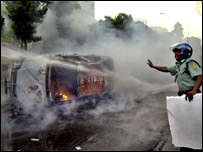 बुधवार को ही अंतरिम सरकार के प्रमुख फ़ख़रुद्दीन अहमद ने राष्ट्र को संबोधित किया. उन्होंने कहा कि कुछ मौक़ापरस्त लोग और शक्तियाँ देश में अव्यवस्था फैलाना चाहती हैं. उन्होंने कहा कि कर्फ़्यू तो अस्थायी तौर पर लगाया गया है. सरकार ने गुरुवार को सार्वजनिक अवकाश घोषित किया है. ढाका सहित छह शहरों के विश्वविद्यालय और कॉलेज को बंद करने का आदेश दिया गया है और सभी छात्रों को कैम्पस छोड़ने को कहा गया है. साथ ही टीवी चैनलों को हिंसा की तस्वीरें दिखाने से मना कर दिया गया है. बांग्लादेश से बीबीसी संवाददाताओं का कहना है कि सरकार का विरोध हिंसा का रूप लेता जा रहा है. राजधानी ढाका में तो विरोध प्रदर्शनों के दौरान छात्रों के साथ दूकानदार, रिक्शाचालक और व्यापारी भी शामिल हो गए. | इससे जुड़ी ख़बरें बांग्लादेश के छह शहरों में कर्फ़्यू जारी22 अगस्त, 2007 | भारत और पड़ोस ढाका विश्वविद्यालय से हटाई जाएगी सेना21 अगस्त, 2007 | भारत और पड़ोस ढाका में पुलिस-छात्र संघर्ष, दर्जनों घायल20 अगस्त, 2007 | भारत और पड़ोस 'अपना दूसरा घर छोड़कर कहाँ जाऊँ?' 19 अगस्त, 2007 | भारत और पड़ोस लेखिका तस्लीमा नसरीन से हाथापाई09 अगस्त, 2007 | भारत और पड़ोस भारत और बांग्लादेश के सचिवों की बैठक02 अगस्त, 2007 | भारत और पड़ोस भारत से चली ट्रेन ढाका पहुँची08 जुलाई, 2007 | भारत और पड़ोस मुजीब हत्याकांड के अभियुक्त निष्कासित18 जून, 2007 | भारत और पड़ोस | ||||||||||||||||||||||||||||||||||||||||||||||||||||||||||||||||||||||||||||||||||||||||||