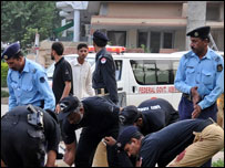 इस्लामाबाद से बीबीसी के स्थानीय संवाददाता शहज़ाद मलिक ने बताया कि मरनेवालों में 14 पुलिसकर्मी हैं और पाँच आम नागरिक. पुलिस का कहना है कि यह एक आत्मघाती बम हमला था जिसमें जान-बूझकर पुलिसकर्मियों को निशाना बनाया गया. इस धमाके को लाल मस्जिद पर हुई सैनिक कार्रवाई से जोड़कर देखा जा रहा है, यह धमाका मस्जिद के निकट स्थित थाने के बाहर हुआ है. यह धमाका ऐसे समय पर हुआ है जबकि इस्लामाबाद में रविवार को देश भर के मदरसों के छात्र लाल मस्जिद पर सैनिक कार्रवाई की बरसी के मौक़े पर विरोध प्रदर्शन कर रहे थे.