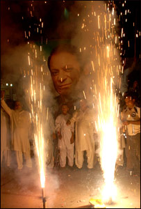 इस बीच परवेज़ मुशर्रफ़ के इस्तीफे के बाद पाकिस्तान में कुछ जगहों पर सार्वजनिक जश्न मनाया गया.