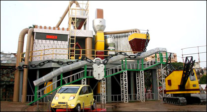 टाटा मोटर्स ने तो हाल ही में नैनो परियोजना को राज्य से बाहर ले जाने का ऐलान कर दिया है और नैनो तो अभी बनी भी नहीं है. इसके बावजूद यह सच है कि कोलकाता के लोगों को टाटा की छोटी कार भी देखने को मिल रही है और पूरा संयंत्र भी. दरअसल कोलकाता की एक दुर्गापूजा समिति ने यह कारनामा किया है. उसने अपना पंडाल बनाया है नैनो संयंत्र की तर्ज़ पर. वहाँ नैनो कार का मॉडल भी रखा हुआ है. देखने में एकदम असली जैसा, अंतर यही है कि उसमें इंजन नहीं है. दिलचस्प बात यह है कि इस मॉडल को बनाने पर भी एक लाख रुपए का ही ख़र्च आया है. इस पूजा को देखने के लिए भारी भीड़ उमड़ रही है. आयोजन कोलकाता में संतोष मित्र स्क्वेयर पूजा समिति की गिनती जानीं-मानीं समितियों में की जाती है. हर साल वह कोई अनूठी थीम के आधार पर पूजा का आयोजन करती है.