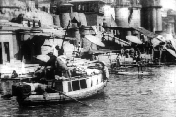 ब्रिटिश फ़िल्म इंस्टीट्यूट आज़ादी पूर्व भारत से जुड़े कुछ दुर्लभ वीडियो इन दिनों लंदन में दिखा रहा है. . ये तस्वीर 'पैनोरामा ऑफ़ कैलकटा' नाम के वीडियो से ली गई है जो 1899 में शूट किया गया था. हालांकि इस बात को लेकर भ्रम है कि ये कोलकाता है या बनारस. ब्रिटिश फ़िल्म इंस्टीट्यूट लोगों से इस बारे में राय भी माँग चुका है. आलेख: वंदना, बीबीसी संवाददाता |