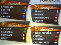 पुर्तगाल में यूरो 2004 के लिए चार ग्रुप बनाए गए हैं. मेजबान पुर्तगाल ग्रुप ए में है जहाँ उसकी टक्कर यूनान, स्पेन और रूस से है. इंग्लैंड ग्रुप बी में है जहाँ पिछले यूरो 2000 के विजेता फ़्रांस, स्विट्ज़रलैंड और क्रोएशिया भी हैं. जर्मनी ग्रुप डी में है जहाँ हॉलैंड, लातविया और चेक गणराज्य भी हैं. यूरो 2004 का फ़ाइनल चार जुलाई को खेला जाएगा. आइए नज़र डालें ग्रुप में शामिल देशों और मैचों के कार्यक्रमों पर....... ग्रुप पर एक नज़र