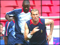 इंग्लैंड की टीम को उस समय ज़रूर झटका लगा जब रक्षापंक्ति के महत्वपूर्ण खिलाड़ी जॉन टेरी की मांसपेशी में खिंचाव आ गया. अब वे फ़्रांस के ख़िलाफ़ नहीं खेल पाएँगे. लेकिन आर्सेनल से खेलने वाले सोल कैंपबेल पूरी तरह फ़िट हैं और शायद जॉन टेरी की जगह लेडली किंग को उनके साथ खेलने का मौक़ा मिले. माइकल ओवेन, रूनी, जिरार्ड जैसे खिलाड़ियों की मौजूदगी में इंग्लैंड अच्छे प्रदर्शन का दावा तो कर सकता है लेकिन फ़्रांस की टीम भी उन्हें कम टक्कर नहीं देगी. फ़्रांस के कप्तान मार्से डिजैली इंग्लैंड के ख़िलाफ़ नहीं खेल पाएँगे. लेकिन टीम में ज़िनेदिन ज़िदान, थियेरी ऑनरी, पैट्रिक विएरा, रॉबर्ट पिरेस जैसे खिलाड़ी किसी भी चुनौती का सामना कर सकते हैं. |