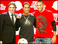 ब्राज़ील के स्टार फ़ुटबॉल खिलाड़ी और स्पेन के बार्सिलोना से क्लब फ़ुटबॉल खेलने वाले रोनाल्डिनियो को फ़ीफ़ा ने वर्ष 2004 का वर्ल्ड प्लेयर ऑफ़ द ईयर का पुरस्कार दिया है. फ़ुटबॉल की सर्वोच्च अंतरराष्ट्रीय संस्था फ़ीफ़ा के इस प्रतिष्ठित पुरस्कार की दौड़ में रोनाल्डिनियो के साथ-साथ आर्सनल के थियरी ऑनरी और एसी मिलान के एंद्रिय शेवचेन्को भी शामिल थे. लेकिन रोनाल्डिनियो इन सभी पर भारी पड़े. अंतरराष्ट्रीय स्तर पर कप्तानों और कोच के वोट से मिलने वाले इस पुरस्कार के लिए रोनाल्डिनियो को कुल 620 अंक मिले. थियरी ऑनरी 552 अंक के दूसरे स्थान पर रहे. जबकि शेवचेन्को को मात्र 253 अंक ही मिल पाए. इस सत्र में अपने क्लब को स्पैनिश लीग की चोटी पर पहुँचाने में अहम भूमिका निभाने वाले रोनाल्डिनियो इस पुरस्कार से फूले नहीं समा रहे. बेहतरीन उन्होंने कहा, "मेरे लिए यह बहुत बड़ी बात है. यह अनोखी जीत है. क्योंकि मैं कभी भी गोल करने वाला बड़ा खिलाड़ी नहीं रहा हूँ."