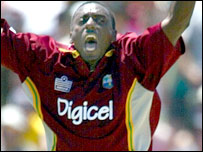 लेकिन पहले छठे विकेट के लिए साइमन कैटिच और ब्रैड हाडिन और फिर नौवें विकेट के लिए गिलेस्पी और ब्रेट ली के बीच हुई नाबाद साझेदारी के कारण ऑस्ट्रेलिया का स्कोर 269 तक पहुँच गया. छठे विकेट के लिए कैटिच और हाडिन के बीच 82 रनों की महत्वपूर्ण साझेदारी हुई. जबकि नौवें विकेट के लिए गिलेस्पी और ली के बीच 73 रनों की नाबाद साझेदारी ने महत्वपूर्ण भूमिका निभाई. साइमन कैटिच ने सबसे ज़्यादा 76 रन बनाए जबकि गिलेस्पी 44 और ली 38 रन बनाकर नाबाद रहे. वेस्टइंडीज़ की ओर से पेड्रो कॉलिंस ने 43 रन देकर पाँच विकेट चटकाए. ड्वेन ब्रैवो के खाते में दो और वैवेल हाइंड्स के खाते में एक विकेट आए. जवाब में वेस्टइंडीज़ ने ख़राब शुरुआत की और उसके दो विकेट सिर्फ़ तीन रन पर ही गिर गए. सरवन और चंद्रपॉल के बीच तीसरे विकेट के लिए 92 रनों की साझेदारी हुई. लेकिन उन दोनों के आउट होने के बाद वेस्टइंडीज़ की ओर से कोई भी नहीं टिक पाया. वेस्टइंडीज़ की पूरी टीम 44.5 ओवर में 196 रन बनाकर आउट हो गई. वेस्टइंडीज़ की ओर से चंद्रपॉल ने 55 और सरवन ने 39 रन बनाए. ब्रेट ली ने 38 रन देकर चार विकेट लिए. गिलेस्पी को दो विकेट मिले. जबकि मैकग्रॉ, ब्रैड हॉग और डेरेन लीमैन को एक-एक विकेट मिले. |