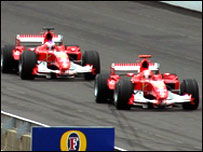 कुछ समय पहले तक फ़ॉर्मूला वन रेसिंग के उस्ताद माने जाने वाले माइकल शूमाकर ने अमरीकी ग्रां प्री में इस साल की अपनी पहली रेस तो जीत ली लेकिन वे भी अपनी इस जीत को शायद ही कभी भूल पाएँ. अमरीकी ग्रां प्री में उनकी जीत इतिहास में दर्ज हो गई है. फ़ॉर्मूला वन के इतिहास में पहली बार हुई इस हास्यास्पद रेस में सिर्फ़ छह फ़ॉर्मूला वन ड्राइवरों ने हिस्सा लिया. सात ड्राइवरों को रेस में इसलिए हिस्सा लेने से रोक दिया गया क्योंकि कार निर्माताओं ने उनकी कार की मिचेलिन टायरों को असुरक्षित घोषित कर दिया. जिन तीन टीमों को रेस में उतरने की अनुमति मिली वे थीं- फ़ेरारी, जॉर्डन और मिनार्डी. ऐसा इसलिए हुआ क्योंकि ये टीमें अपनी कार में ब्रिजस्टोन टायर का इस्तेमाल करती हैं. इस अजीबो-ग़रीब रेस का फ़ायदा भारत के पहले फ़ॉर्मूला वन ड्राइवर नारायण कार्तिकेयन को भी हुआ. जॉर्डन टीम के ड्राइवर नारायण कार्तिकेयन ने छह ड्राइवरों में चौथा स्थान हासिल किया. जॉर्डन टीम के उनके साथी खिलाड़ी टिएगो मॉन्टिएरो को तो तीसरा स्थान मिला. फ़ेरारी के ही ड्राइवर रुबिन बैरिकेलो को दूसरा स्थान मिला. दर्शक नाराज़ लेकिन इंडियानापोलिस सर्किट पर हुई इस रेस से दर्शक इतने नाराज़ हुए कि उन्होंने रेस सर्किट पर बोतल, कैन और अन्य चीज़ें फेंकी.