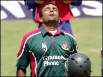 बांग्लादेश का पहला विकेट सिर्फ़ 22 रन पर ही गिर गया था. लेकिन दूसरे विकेट के लिए जावेद उमर और तुषार इमरान के बीच 70 रनों की साझेदारी हुई. लेकिन जब टीम का स्कोर 92 रन पर था तुषार इमरान 32 रनों के व्यक्तिगत स्कोर पर आउट हो गए. अभी तक बांग्लादेश की ओर से नैटवेस्ट सिरीज़ में सबसे अच्छी पारी खेलने वाले मोहम्मद अशरफ़ुल पहली गेंद पर ही आउट हो गए. इसके बाद हबीबुल बशर 10 और आफ़ताब अहमद 15 रन बनाकर चलते बने. बांग्लादेश की ओर से सर्वाधिक 81 रन बनाने वाले जावेद उमर छठे विकेट के रूप में आउट हुए. आख़िरी ओवरों में बांग्लादेश की ओर से उपयोगी पारी खेली खालिद मसूद ने. मसूद 43 गेंदों पर 42 रन बनाकर नाबाद रहे. इंग्लैंड की ओर से एंड्रयू फ़्लिंटफ़ ने 29 रन देकर पाँच विकेट झटके. साइमन जोन्स और एशले जाइल्स को एक-एक विकेट मिला. |