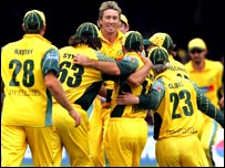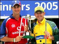 उसके बाद आख़िरी ओवर में ही डेरेन गफ़ रन आउट हो गए और फिर आख़िरी गेंद पर जीत के लिए इंग्लैंड को चाहिए थे तीन रन. आख़िरी गेंद जाइल्स के पैर से लगी और नज़दीक खड़े फ़ील्डरों को चकमा दे गई. मैकग्रॉ और गिलक्रिस्ट एलबीडब्लू की अपील करते रह गए और खिलाड़ियों ने दो रन बना लिए और स्कोर टाई हो गया. इसके साथ ही रोमांच से भरपूर इस नेटवेस्ट सिरीज़ का अंत भी काफ़ी रोमांचक रहा और दोनों टीमें बनीं संयुक्त विजेता. इंग्लैंड की ओर से सर्वाधिक 71 रन बनाए विकेटकीपर जोन्स ने जबकि कॉलिंगवुड ने 53 रनों का योगदान किया. ऑस्ट्रेलिया की ओर से ग्लेन मैकग्रॉ ने तीन विकेट लिए जबकि ब्रेट ली के खाते में आए दो विकेट. ब्रेड हॉग और माइक हुसी को एक-एक विकेट मिला. |