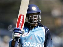 विश्व एकादश की टीम और विक्टोरिया के बीच अभ्यास मैच सेंट किल्डा में हुआ. तय ये हुआ था कि विश्व एकादश की टीम पहले बल्लेबाज़ी करेगी. लेकिन विश्व एकादश की शुरूआत अच्छी नहीं रही और एक समय में उसने 107 रन पर पाँच विकेट खो दिए. लेकिन फिर राहुल द्रविड़ और शॉन पॉलक ने पारी को संभाला. द्रविड़ के 66 और पॉलक के 54 रन की बदौलत विश्व एकादश ने 50 ओवर में आठ विकेट पर 281 रन बनाए. इसके बाद विक्टोरिया टीम की ओर से ब्रैड हॉज ने ऐसी धमाकेदार पारी खेली कि लगा जीत उनके क़दम चूमेगी. लेकिन उनके 92 रन पर आउट होने के बाद पासा पलटा और वे नौ विकेट पर 269 रन ही बना सके जो विश्व एकादश से 12 रन कम था. |