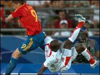 सोमवार को हुए फ़ुटबॉल मुकाबलों में से सबसे दिलचस्प मैच में स्पेन ने ट्यूनीशिया को 3-1 से हरा दिया.