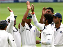 इस तरह पहली पारी के आधार पर भारत ने 165 रनों की अहम बढ़त हासिल की. भारत की ओर से श्रीसंत ने पाँच विकेट लिए जबकि ज़हीर ख़ान और अनिल कुंबले ने दो-दो विकेट लिए. एक विकेट वीआरवी सिंह को मिला.