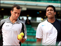 लिएंडर पेस और डैम की जोड़ी पहले सेट में काफ़ी सावधानी पूर्वक खेल रही थी. मैदान पर हमेशा हँसमुख रहने वाले लिएंडर ने जब अपनी सर्विस पर डबल फ़ॉल्ट किया, तो उन्हें ग़ुस्सा आ गया. उन्होंने अपना ग़ुस्सा भी निकाला. लेकिन किस पर....हवा पर. तेज़ हवा के कारण उनकी सर्विस स्विंग हो रही थी और नेट से टकरा कर जब उन्हीं के कोर्ट पर गिर पड़ी, तो ग़ुस्सा तो स्वभाविक ही थी. पेस ने हवा पर ग़ुस्सा निकाला लेकिन खेल पर क़ाबू बनाए रखा और आख़िरकार जीत उनकी हो ही गई. ****************************************************************** टेनिस के कोर्ट पर क्रिकेट समर्थक पाकिस्तान के एसाम उल हक़ क़ुरैशी काफ़ी लोकप्रिय हो चुके हैं. पाकिस्तान के साथ-साथ भारतीयों में भी. गुरुवार को उनका मैच था रूस के मरात साफ़िन के साथ.