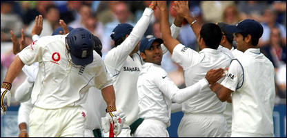 भारत और इंग्लैंड के बीच दूसरे क्रिकेट टेस्ट मैच के चौथे दिन का खेल नॉंटिंघम के ट्रेंट ब्रिज मैदान पर चल रहा है. तीसरे दिन भारत ने 481 रनों का विशाल स्कोर खड़ा किया. अब इंग्लैंड बल्लेबाज़ी कर रहा है. पहले दिन भारत ने टॉस जीतकर फ़ील्डिंग करने का फ़ैसला किया था. दोनों देशों के बीच पहला टेस्ट ड्रॉ रहा था. लॉर्ड्स में हुए इस टेस्ट मैच में इंग्लैंड का पलड़ा भारी था और बारिश के कारण जीत उसके हाथ से निकल गई. इस टेस्ट मैच में भारतीय शीर्ष बल्लेबाज़ों पर काफ़ी दबाव होगा. क्योंकि पहले टेस्ट में उन्होंने काफ़ी निराशाजनक प्रदर्शन किया था. पिछले कुछ दिनों से सौरभ गांगुली पीठ में दर्द से परेशान थे. लेकिन वे इस टेस्ट मैच में खेलेंगे. दूसरी ओर अपने नियमित तेज़ गेंदबाज़ों की ग़ैर मौजूदगी में भी शानदार प्रदर्शन करने वाली इंग्लैंड की टीम के हौसले बुलंद हैं. भारतीय टीम राहुल द्रविड़ (कप्तान), सचिन तेंदुलकर (उप कप्तान), सौरभ गांगुली, महेंद्र सिंह धोनी, वीवीएस लक्ष्मण, वसीम जाफ़र, दिनेश कार्तिक, ज़हीर ख़ान, अनिल कुंबले, एस श्रीसंत, आरपी सिंह. इंग्लैंड की टीम माइकल वॉन (कप्तान), एंड्रयू स्ट्रॉस, एलेस्टर कुक, केविन पीटरसन, पॉल कॉलिंगवुड, इयन बेल, मैथ्यू प्रॉयर, जेम्स एंडरसन, रयान साइडबॉटम, क्रिस ट्रेमलेट, मोंटी पनेसर | इससे जुड़ी ख़बरें वॉर्न-मैकग्रा भारतीय लीग से जुड़ सकते हैं25 जुलाई, 2007 | खेल की दुनिया गांगुली की फ़िटनेस चिंता का विषय बनी25 जुलाई, 2007 | खेल की दुनिया बारिश ने इंग्लैंड को जीत से वंचित किया23 जुलाई, 2007 | खेल की दुनिया मौसम जी! शुक्रिया..मेहरबानी23 जुलाई, 2007 | खेल की दुनिया अपनी छाप छोड़ने को तैयार श्रीसंत19 जुलाई, 2007 | खेल की दुनिया भारत-इंग्लैंड क्रिकेट सिरीज़ का कार्यक्रम19 जुलाई, 2007 | खेल की दुनिया | |||||||||||||||||||||||||||||||||||||||||||||||||||||||||||||||||||||||||||||||||||||||||||||