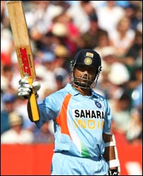 कप्तान राहुल द्रविड़ और उप कप्तान महेंद्र सिंह धोनी ने 24-24 रन बनाए. भारत के लिए अति महत्वपूर्ण इस मैच में इंग्लैंड के कप्तान पॉल कॉलिंगवुड ने टॉस जीतकर पहले फ़ील्डिंग करने का फ़ैसला किया. सचिन तेंदुलकर और सौरभ गांगुली की सलामी जोड़ी ने शुरुआत तो धीमी की और पहला रन बनाने के लिए उन्हें तीसरे ओवर तक इंतज़ार करना पड़ा. लेकिन इसके बाद दोनों आक्रमक मूड में आ गए. ख़ास तौर पर सचिन अपने पुराने रंग में दिखे और उन्होंने कई आकर्षक शॉट लगाए. लुईस के एक ओवर में तो 18 रन बने. सचिन बहुत अच्छा खेल रहे थे लेकिन लुईस की एक गेंद पर उन्होंने बल्ला लगाया और विकेटकीपर प्रायर को कैच दे बैठे. सचिन तेंदुलकर ने 59 गेंदों पर 13 चौके की मदद से 71 रन बनाए. सचिन और सौरभ गांगुली के बीच पहले विकेट के लिए 116 रनों की साझेदारी हुई. सचिन के आउट होने के बाद सौरभ गांगुली ने भी अपना अर्धशतक पूरा किया लेकिन वे भी 59 रन बनाकर पनेसर की गेंद पर आउट हो गए. इसके बाद गौतम गंभीर और युवराज सिंह ने भारतीय पारी को आगे बढ़ाई. गौतम गंभीर ने भी अर्धशतक लगाया. लेकिन इसके तुरंत बाद वे आउट हो गए. युवराज ने आक्रमक पारी खेली और 72 रन सिर्फ़ 57 गेंद पर बनाए. | इससे जुड़ी ख़बरें इंग्लैंड ने चौथे वनडे में भारत को हराया30 अगस्त, 2007 | खेल की दुनिया 'विकेटों के बीच दौड़ सुधारनी होगी'23 अगस्त, 2007 | खेल की दुनिया क्रिकेट बोर्ड ने हटाया कपिलदेव को21 अगस्त, 2007 | खेल की दुनिया पहले वनडे में बुरी तरह हारा भारत21 अगस्त, 2007 | खेल की दुनिया रज़्ज़ाक़ का अंतरराष्ट्रीय क्रिकेट से संन्यास20 अगस्त, 2007 | खेल की दुनिया दो नैना और एक कहानी....20 अगस्त, 2007 | खेल की दुनिया 'स्टार खिलाड़ी' आईसीएल में चमकेंगे20 अगस्त, 2007 | खेल की दुनिया भज्जी को भविष्य सँवरने की उम्मीद19 अगस्त, 2007 | खेल की दुनिया इंटरनेट लिंक्स बीबीसी बाहरी वेबसाइट की विषय सामग्री के लिए ज़िम्मेदार नहीं है. | |||||||||||||||||||||||||||||||||||||||||||||||||||||||||||||||||||||||||||||||||||||||||||||
