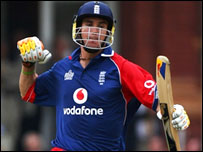 कुछ देर बाद सचिन तेंदुलकर के आउट होते ही भारत पर ख़तरा मँडराने लगा. सचिन को एंड्रयू फ़्लिंटफ़ की गेंद पर आउट दिया गया. लेकिन सचिन इस निर्णय से ख़ुश नहीं थे. बाद में री-प्ले से भी पता चला कि गेंद और बल्ले में संपर्क नहीं हुआ था. सचिन ने 30 रन बनाए. उस समय भारत का स्कोर था चार विकेट पर 59 रन. युवराज सिंह और ओवल वनडे के हीरो रॉबिन उथप्पा ने भारतीय पारी को संभालने की कोशिश की. पाँचवें विकेट की साझेदारी में उन्होंने 47 रन जोड़े. लेकिन उथप्पा इस बार सिर्फ़ 22 रन बनाकर आउट हो गए. जल्द ही युवराज भी 28 रनों के निजी स्कोर पर पवेलियन लौट गए. इसके बाद एक छोर से विकेट गिरते रहे और दूसरे छोर पर महेंद्र सिंह धोनी डटे रहे. धोनी ने आख़िरी विकेट के लिए आरपी सिंह के साथ 27 रन जोड़े. लेकिन वे ख़ुद 50 रन बनाकर आउट हो गए. इस तरह भारतीय पारी 47.3 ओवर में 187 रन पर सिमट गई. इंग्लैंड की ओर से सबसे बेहतरीन गेंदबाज़ी की छक्का मारने में उस्ताद दिमित्री मैस्करान्हैस ने. उन्होंने 10 ओवर में 23 रन देकर तीन विकेट लिए. एंड्रयू फ़्लिंटफ़ ने 45 रन देकर तीन विकेट लिए. जबकि जेम्स एंडरसन ने भी दो विकेट चटकाए. | इससे जुड़ी ख़बरें मारपीट के बाद शोएब को वापस भेजा गया07 सितंबर, 2007 | खेल की दुनिया संन्यास की बात मेरे दिमाग में नहीं:सचिन07 सितंबर, 2007 | खेल की दुनिया एक बार फिर शतक से चूके सचिन06 सितंबर, 2007 | खेल की दुनिया भारत की रोमांचक जीत, सिरीज़ बराबर05 सितंबर, 2007 | खेल की दुनिया बारिश से प्रभावित मैच में भारत जीता02 सितंबर, 2007 | खेल की दुनिया इंग्लैंड ने चौथे वनडे में भारत को हराया30 अगस्त, 2007 | खेल की दुनिया एजबेस्टन में इंग्लैंड ने अपना झंडा गाड़ा27 अगस्त, 2007 | खेल की दुनिया दूसरे वनडे में किसी तरह जीता भारत24 अगस्त, 2007 | खेल की दुनिया इंटरनेट लिंक्स बीबीसी बाहरी वेबसाइट की विषय सामग्री के लिए ज़िम्मेदार नहीं है. | |||||||||||||||||||||||||||||||||||||||||||||||||||||||||||||||||||||||||||||||||||||||||||||